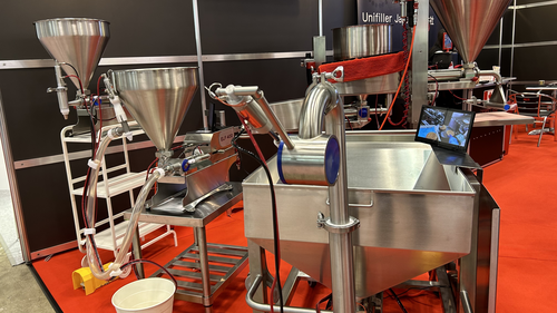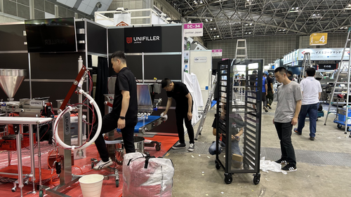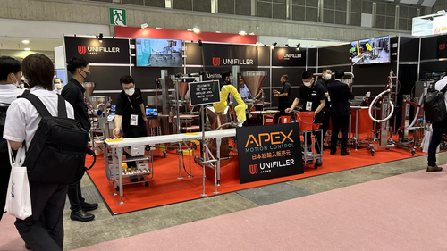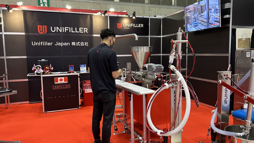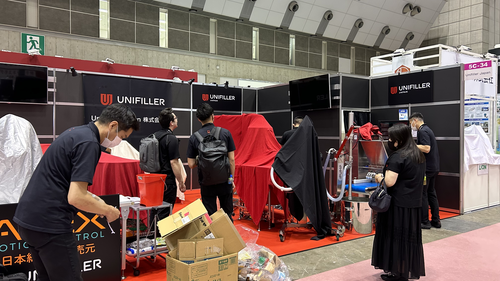 多連ノズル充填機MultiStationが自動で様々な充填を行うデモを実演しました。様々な物性に対応し各種オリジナルレシピも保存が可能なので、省スペース及び大量生産を同時に実現したいお客様には最適の機械です。今回も非常に多くのお客様からお問合せを頂くことが出来ました。