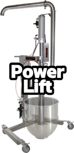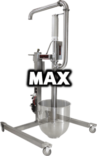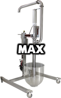 40mlから2,750mlまで幅広く大量充填できる、本体が昇降する充填機です。本体を下げてホッパーへの投入が簡単に行えます。また、好みの高さに調整できるので快適に作業することが可能です。