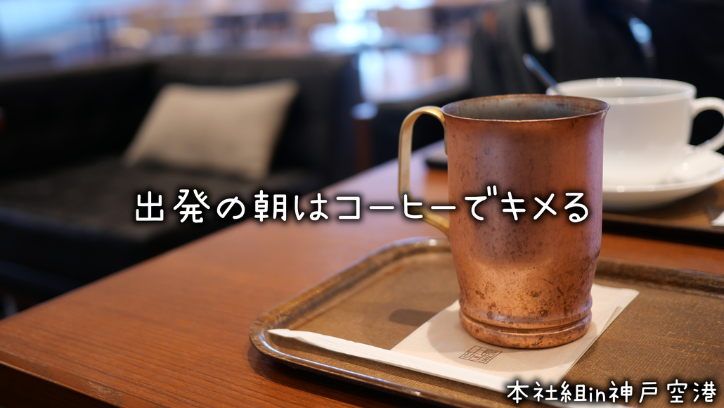 大阪本社チームは、スカイマークで神戸空港から茨城空港まで移動しました! 普段はあまり行くことのない空港ということもあり、非常に新鮮な気持ちになりました。大阪組は普段、伊丹空港もしくは関西国際空港を利用することが多く、隣県とはいえ県外空港の利用は出張気分を増幅させてくれますね。出発までの待ち時間、まずは貴族が利用するようなカフェで贅沢なコーヒーをキメました。 最高の朝ですYO!