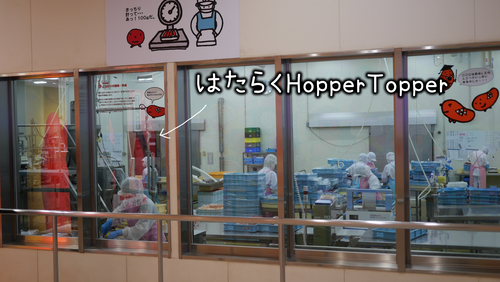 さて、2日目は弊社のお客様である”東京かねふく様”の施設、めんたいパーク大洗へみんなでお邪魔しました。この施設では、様々な明太子関連の製品が購入できるほか、ガラス越しに実際の生産現場を見学することができます。実際に私たちの搬送ポンプであるホッパートッパーが稼働しているところをご家族にも見て頂くことができ、大変有意義な見学の時間となりました。普段あまりご家族の皆様には、業務内容を詳しく伝える機会はないと思うので、実際の生産ラインで私たちの機械とその稼働状況を見て頂き、少しでも仕事に対する理解を深めて頂けたと信じております。