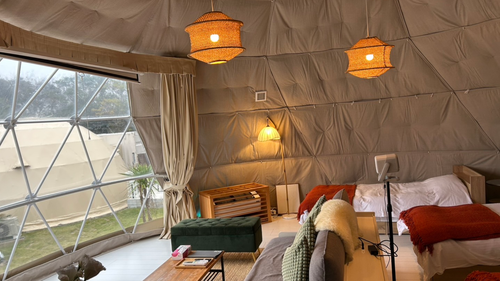 完成したばかりのLABOのお披露目会のあと、本日のお宿に向かいます。今回宿泊するのは”Glamping Kashima 753”というグランピング場で、鹿島LABOから10分程度で行ける超近場の宿泊施設です。海のすぐ近くで自然の音を聞きながら田舎の環境を満喫できるとともに、非常に清潔な室内でリラックスできるという、なんとも最高に贅沢な体験ができるお宿となっております。