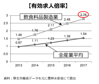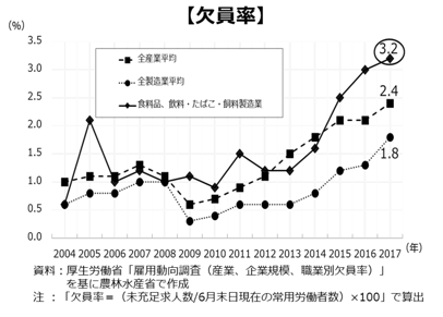 上記のグラフ(参照1)をご覧頂ければ、如何に食品製造業が慢性的な労働力不足に陥っているかが確認できます。
